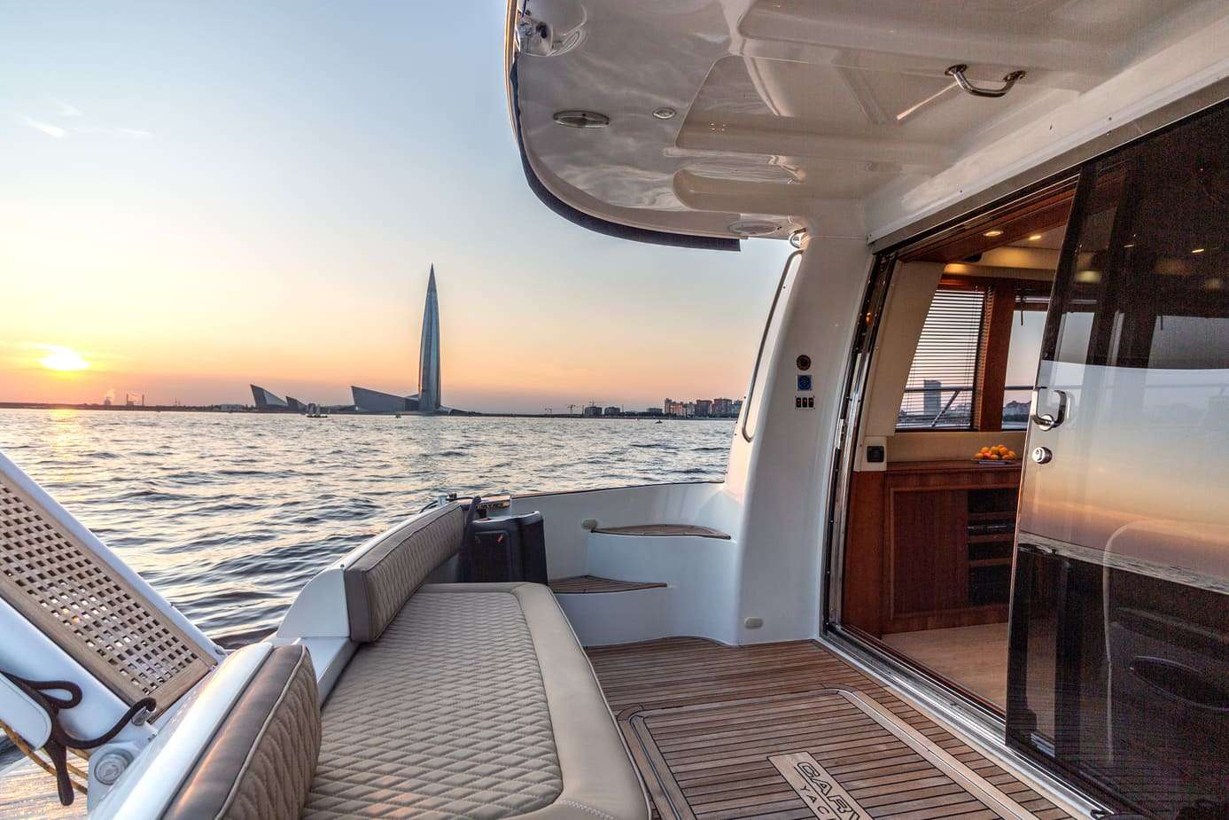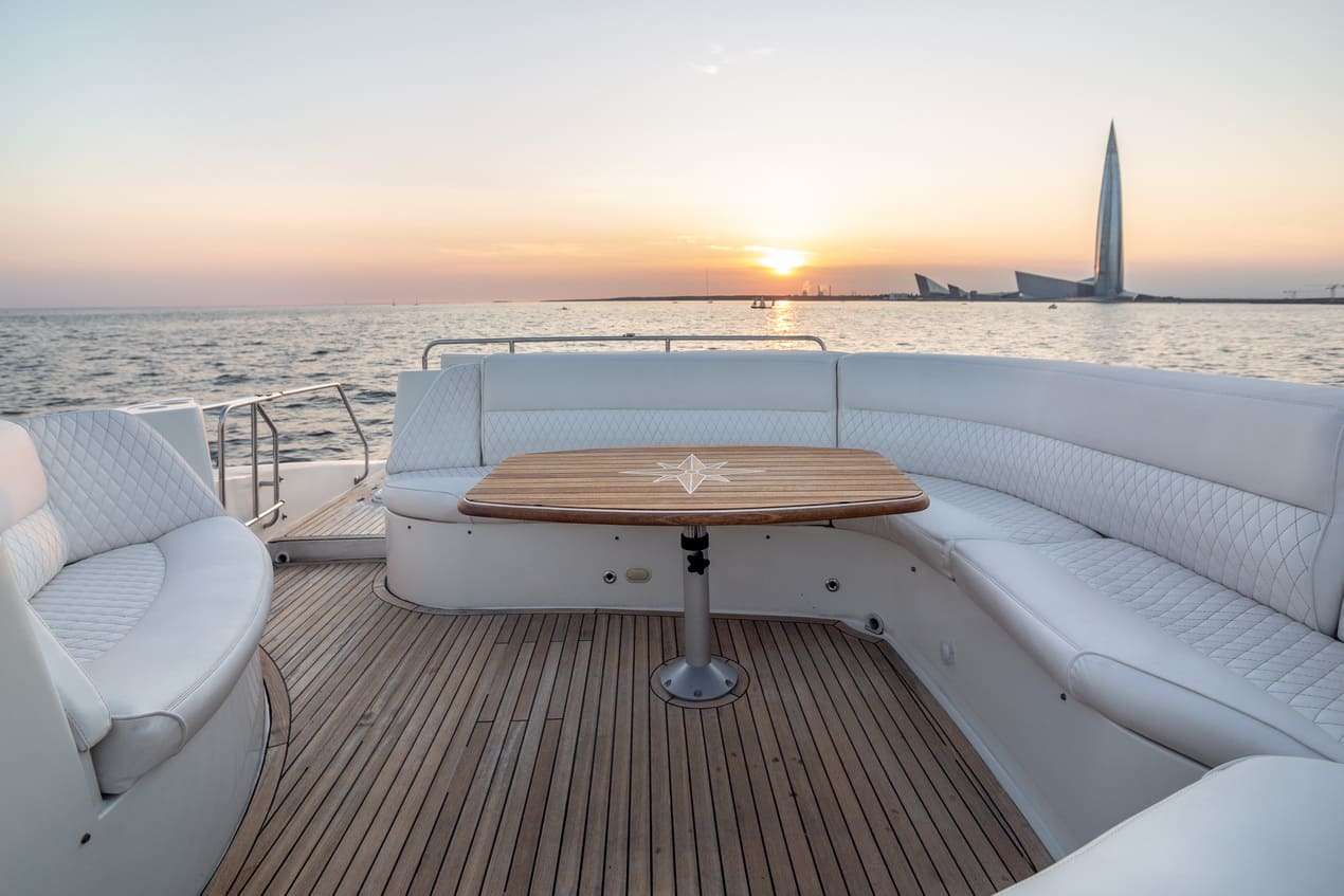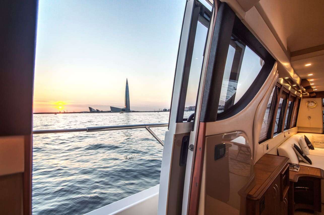 Моторная яхта Carver 60 «Мила» — просторное и комфортабельное судно для прогулок по Неве, Ладоге и Финскому заливу. На борту имеются флайбридж с мягкими диванами, салон с кожаной мебелью и кухней с панорамными окнами, качественная аудиосистема и все для отдыха: посуда, пледы, бытовая техника. Для отдыха гостей предусмотрены 3 каюты для 6 человек. Идеальная яхта для праздников и романтических прогулок.