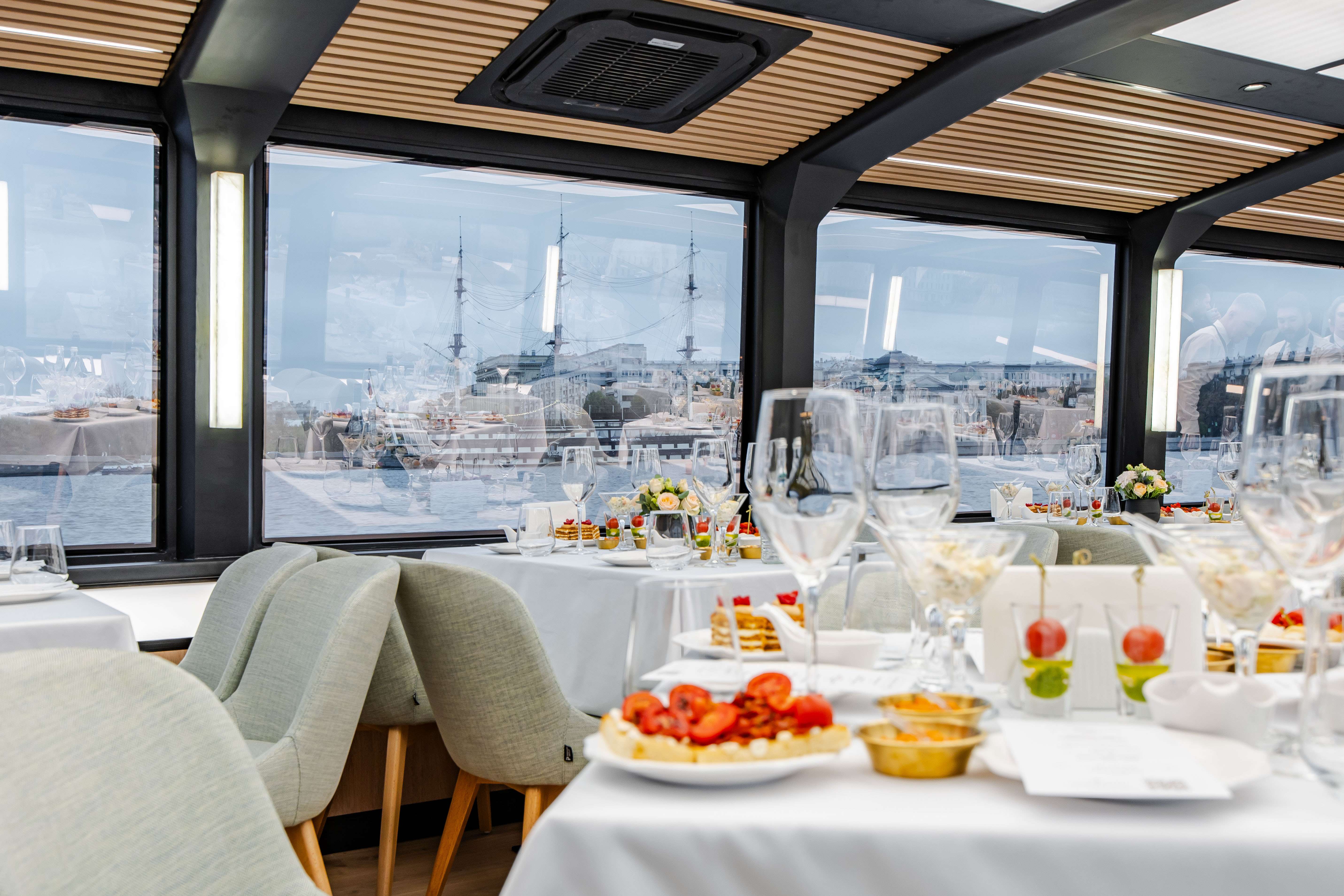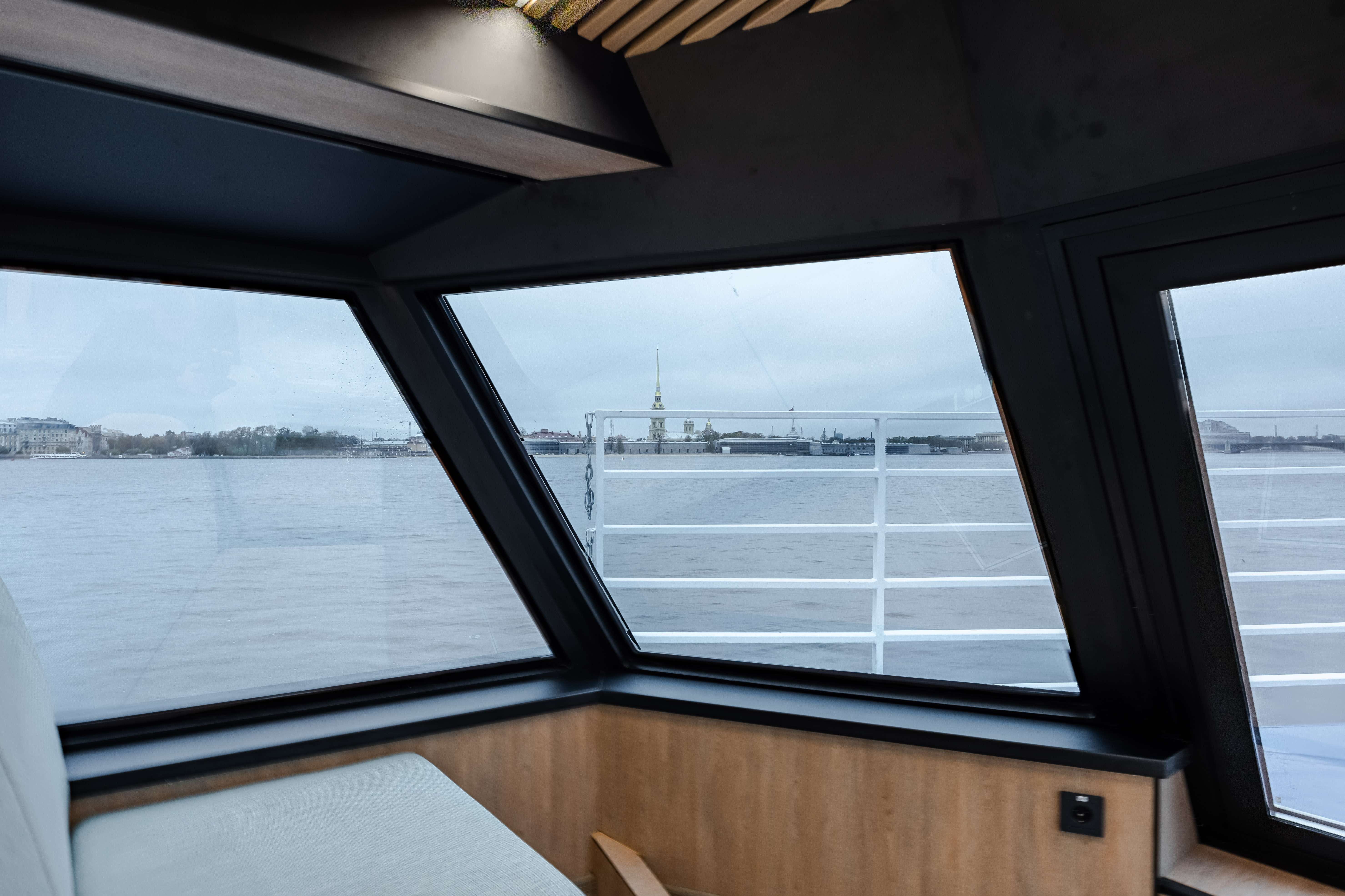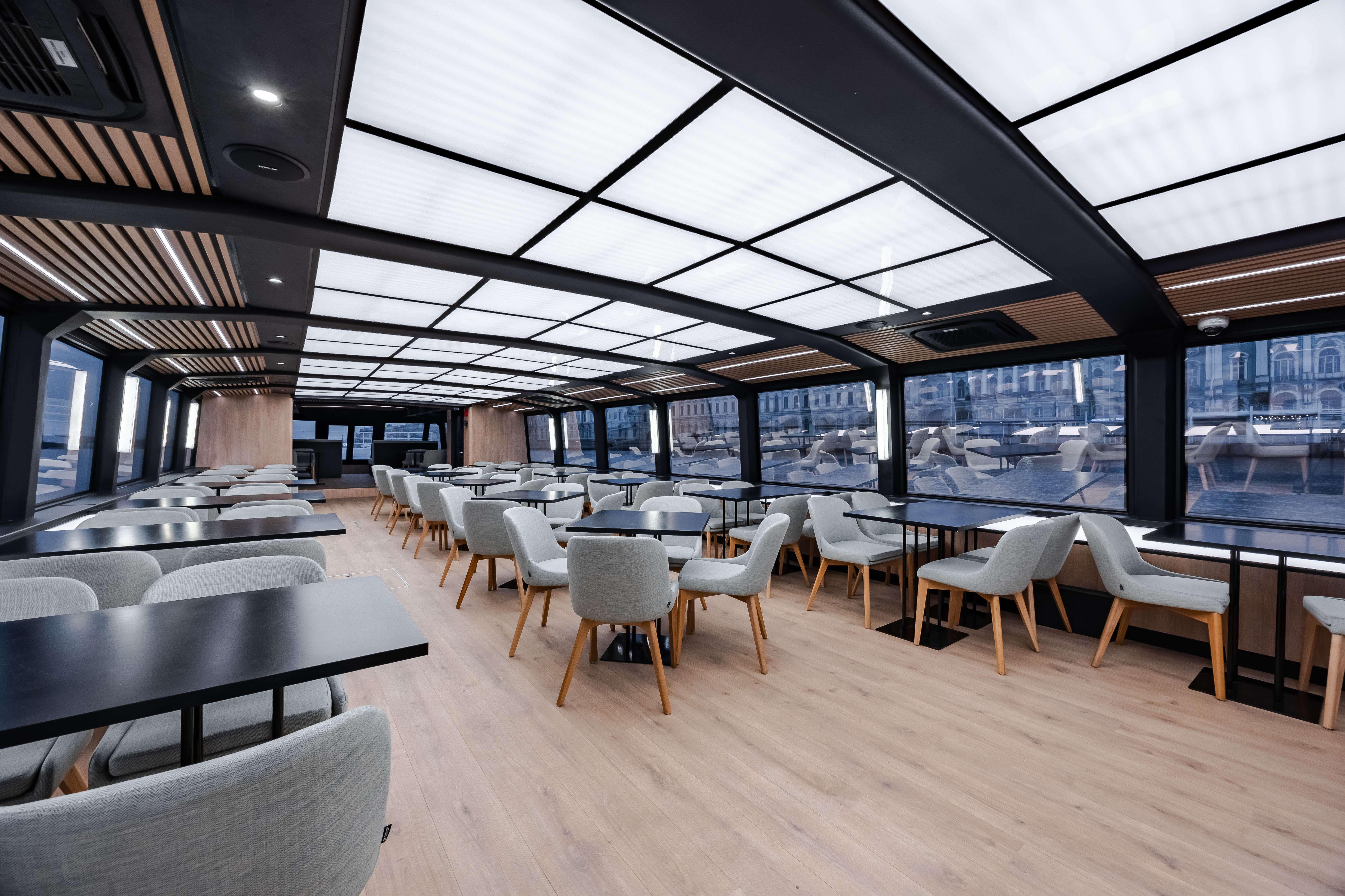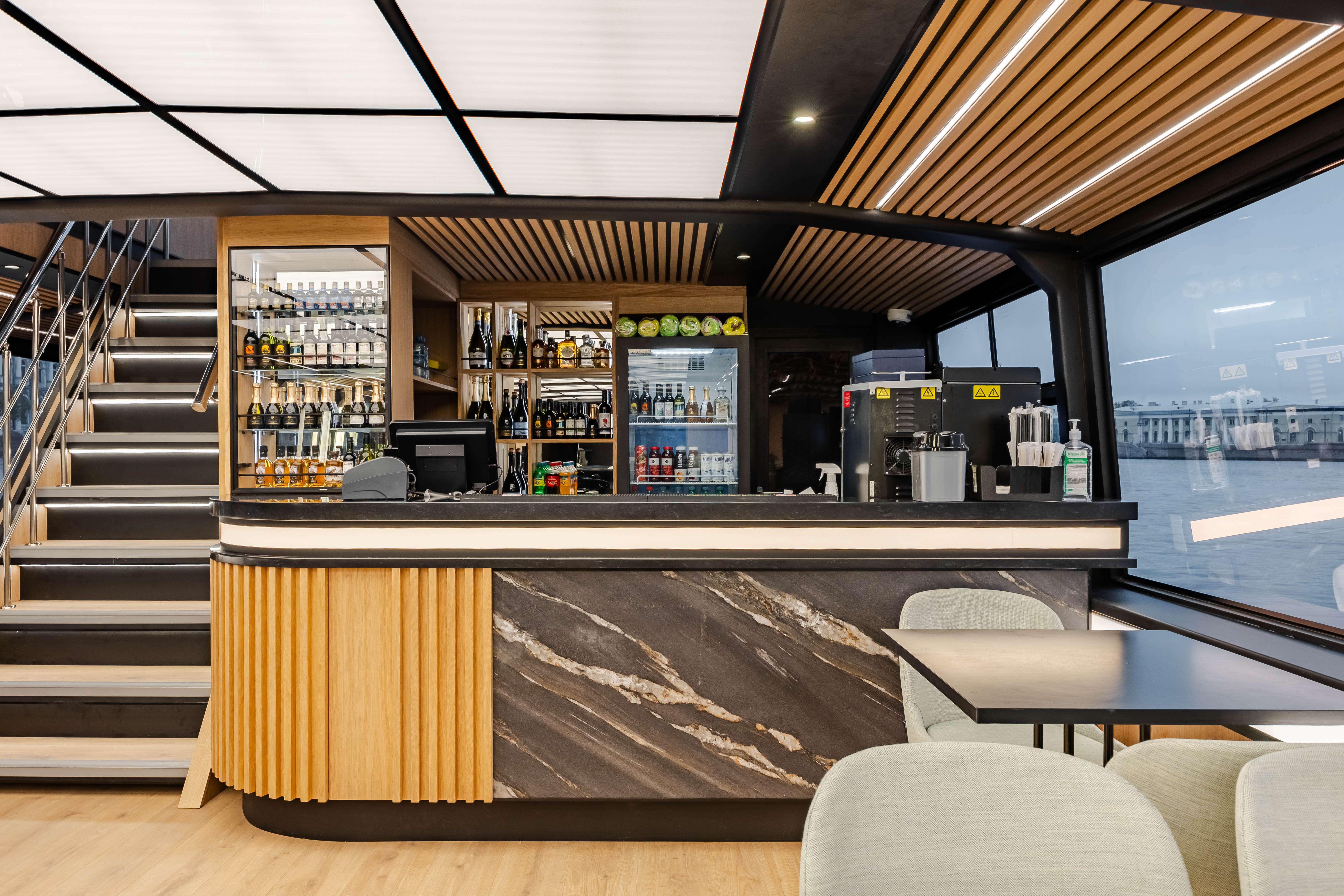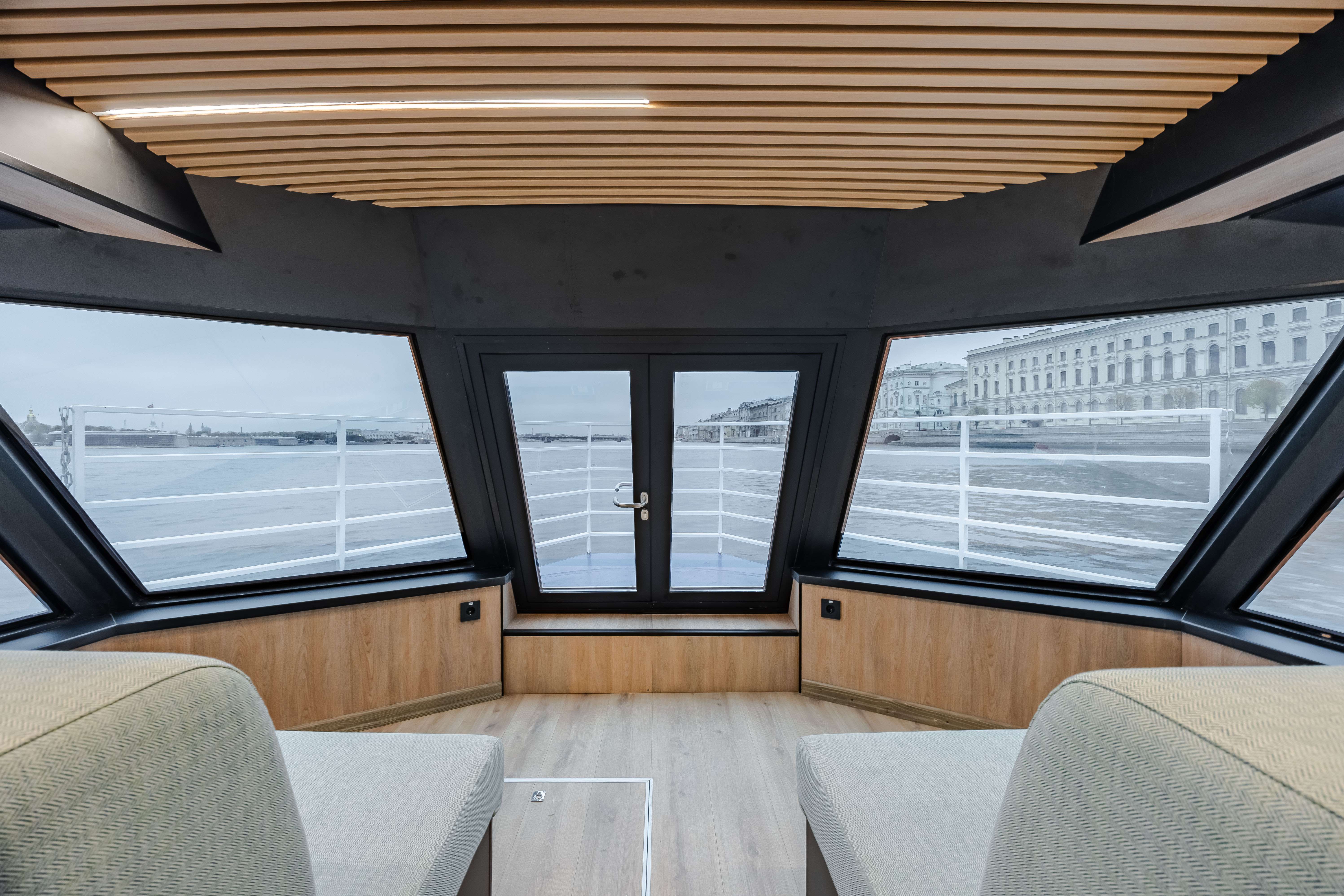 Теплоход «Москва 183» — комфортное двухпалубное судно, прошедшее реновацию в 2025 году. Просторный салон оформлен в светлых песочных тонах, а мозаичные элементы в интерьере создают особую атмосферу. Благодаря большим панорамным окнам с теплохода открываются прекрасные виды на Санкт-Петербург. Удобные посадочные места позволяют разместить гостей с комфортом, что делает судно подходящим для проведения экскурсий, торжественных мероприятий и деловых встреч.