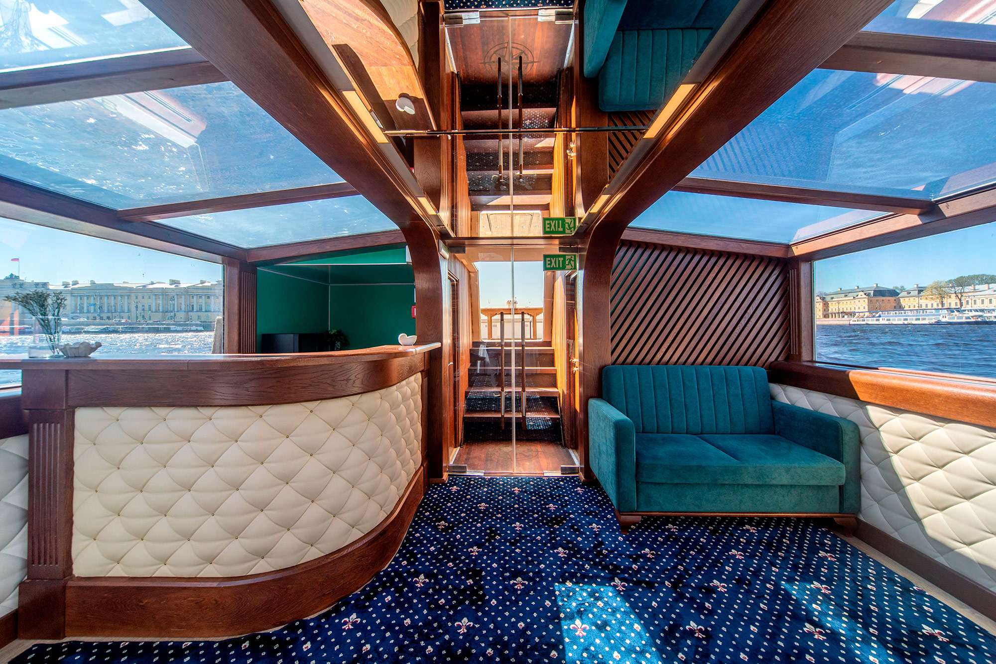 Теплоход «Талисман» воплощает комфорт и стиль на воде. После полной реновации в 2023 году судно стало еще более современным и уютным. Просторный салон с высокими потолками, большими панорамными окнами и удобными диванами идеально подходит для организации банкетов (до 35 гостей) и фуршетов (до 50 персон). Открытая палуба, вмещающая до 40 человек, позволяет организовать танцевальную площадку или обзорную зону, если погода позволяет. Для удлбства пассажиров имеются кондиционер, телевизор, высококачественная аудиосистема, а также стильная мебель. Прекрасное судно для свадеб, дней рождения или корпоративов на воде, а также для теплоходных прогулок.